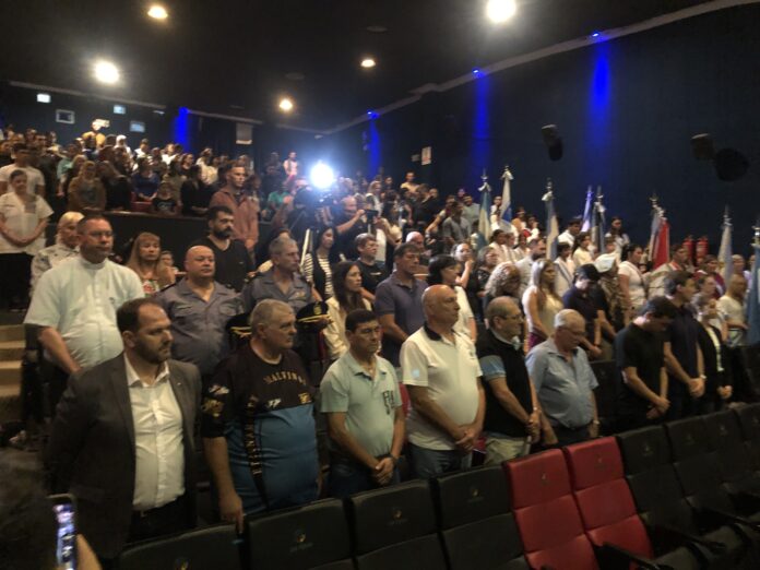 En el Centro Cultural Municipal de San JOrge se llevo a cabo el acto recordatorio de la gesta de Malvinas. El mismo no se realizo en la plazoleta de calle 25 de mayo, debido a las malas condiciones climaticas. Con la apertura e ingreso de los abanderados, la profesora E., Mechia diserto unas palabras para luego dar paso al cura parroco y dio la bendicion. POsterirmente el Intendente municipal, Juan P. Pellegrino, dirigio unas palabras y posteriormente los ex combiatienes fueron homenajeados con presentes.