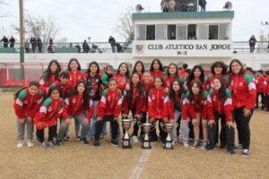 En el entretiempo del partido de primera división entre Atlético San Jorge y el Expreso, los menores tanto femeninos como masculinos recorrieron el campo de juego para recibir el aplauso de todos los hinchas, especialmente destacar la hinchada verdiblanco de El trébol que también se sumó al reconocimiento.