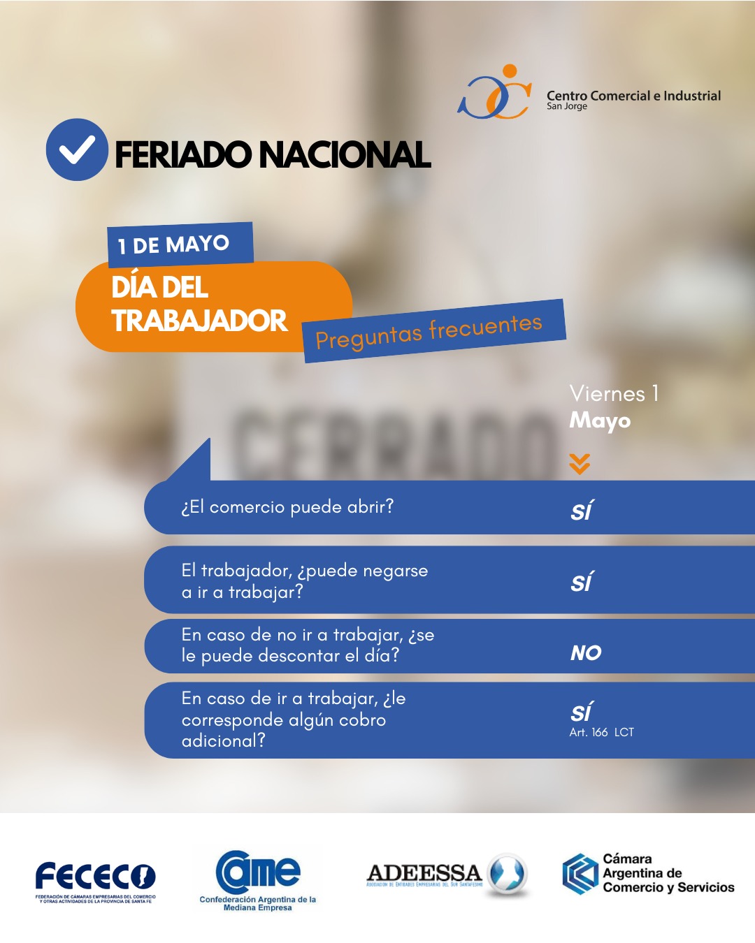 CENTRO COMERCIAL INFORMA FERIADO InicioNoticias 30 de abril de 2026 FacebookXWhatsAppEmail El centro Comercial e Industrial de San Jorge informa sobre el feriado del 01 de mayo y sus caracteristicas COMENZÓ LA OBRA DE RIPIADO CAMINO A TRAILL 30 de abril de 2026 TRES PENALES ATAJADOS A UN MISMO DELANTERO EN CHILE 30 de abril de 2026 ATLETICO SAN JORGE GANO COMO VISITANTE 30 de abril de 2026 ACCIDENTE FRENTE AERO CLUB SAN JORGE 29 de abril de 2026