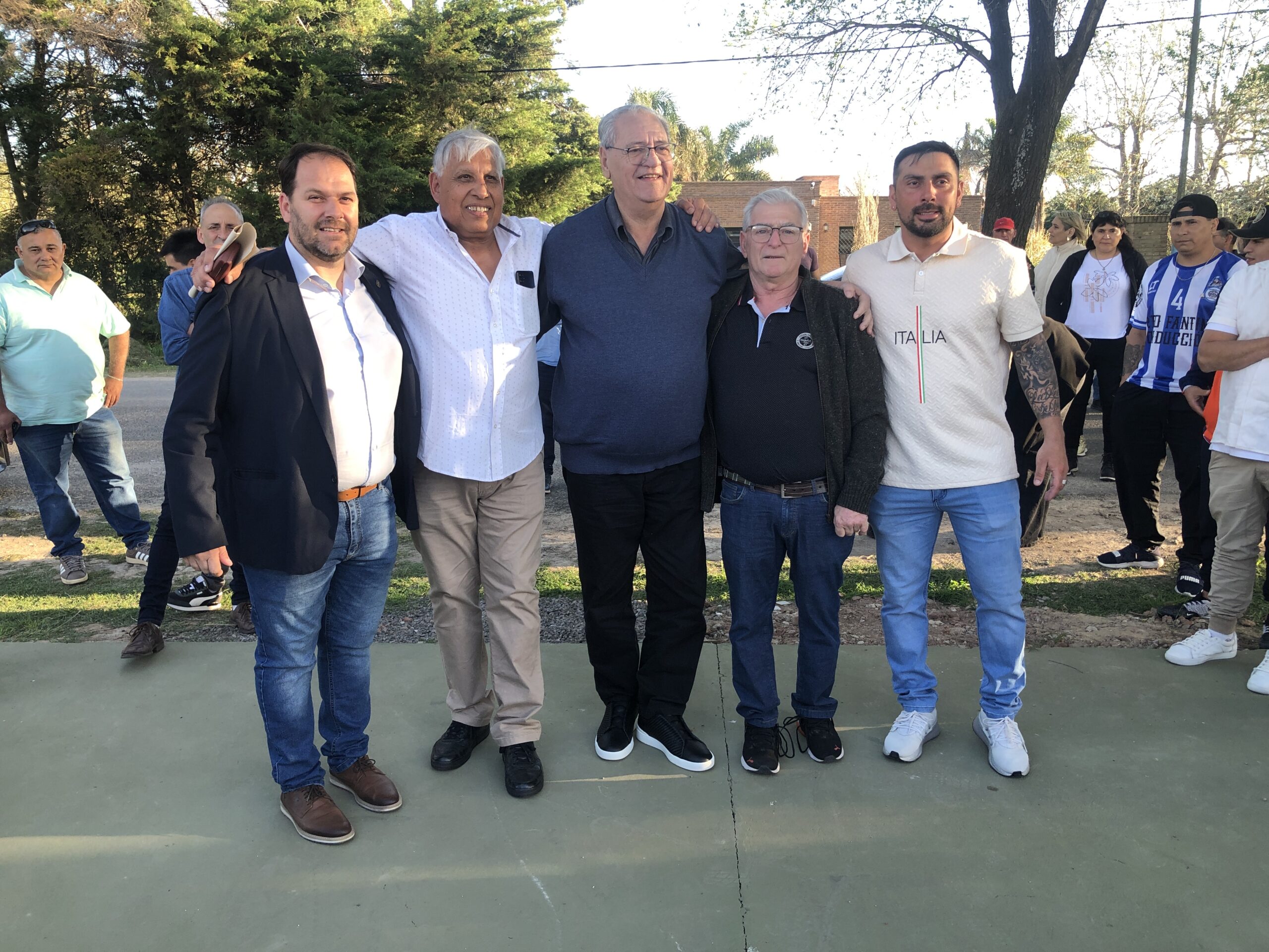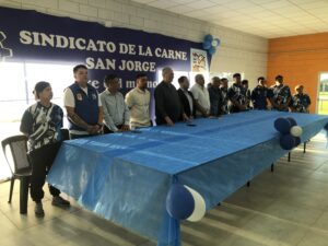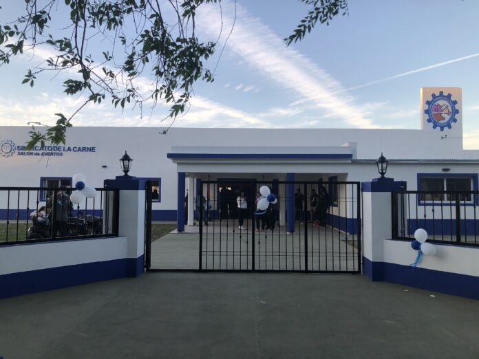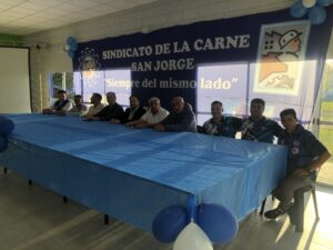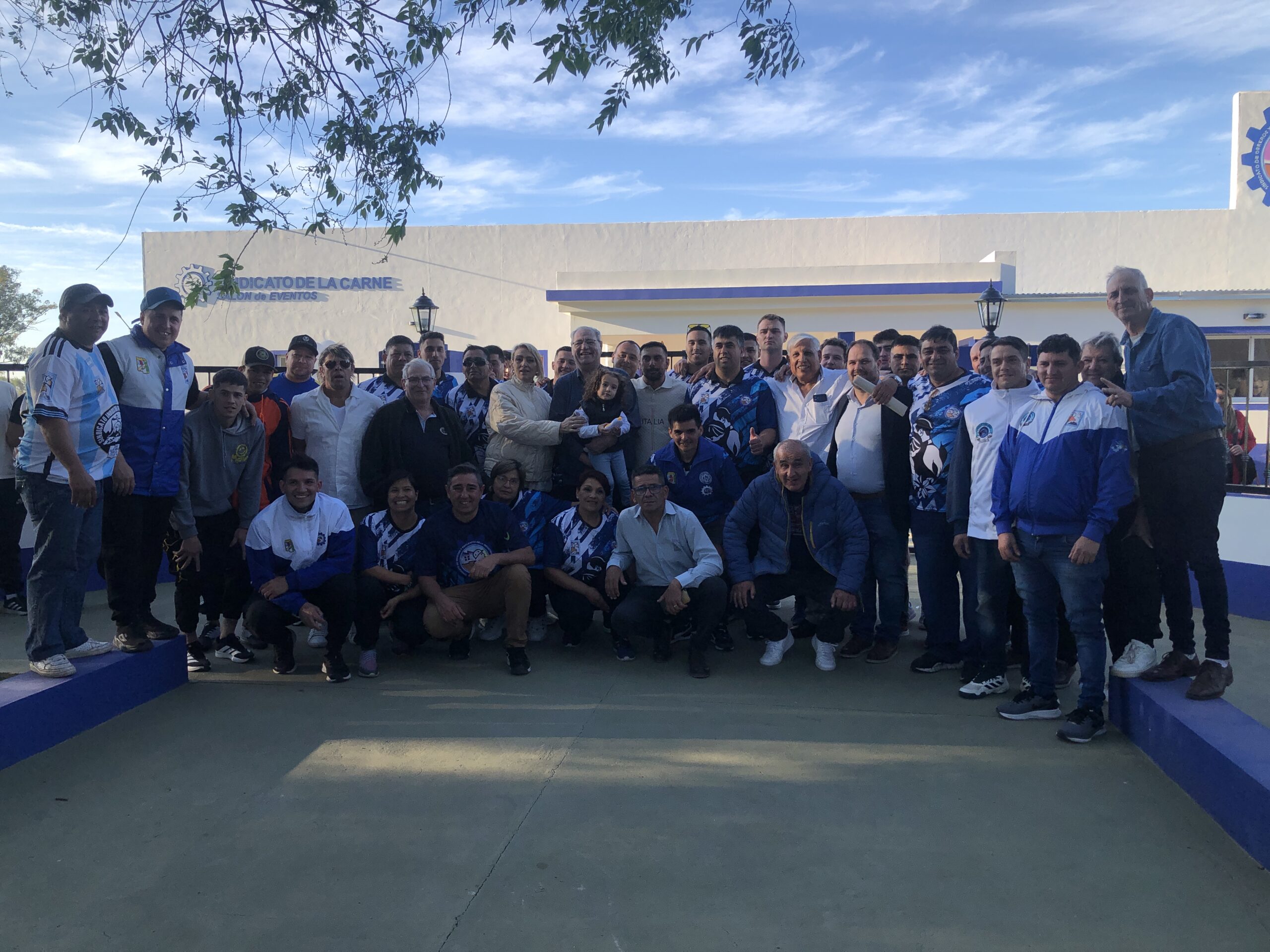 En un acto muy emotivo, el sindicato de lCArne filial San Jorge inauguro su nuevo predio en el sector norte de la ciudad. Estuviern presentes Beto Fantini, máximo referente sindical del orden nacional, el intendente Juan P. Pellegrino, Jorge Fiorentini y Mario Rizzi, delegados locales y muchisimo afiliados e invitados al evento. El predio cuenta con un moderno salon de fiestas para albergar alrededor de 300 personas y muchos quinchos. El proximo paso sera la construccion de la pileta y se han adquirido nuevos terrenos para ampliar la oferta a sus afiliados.