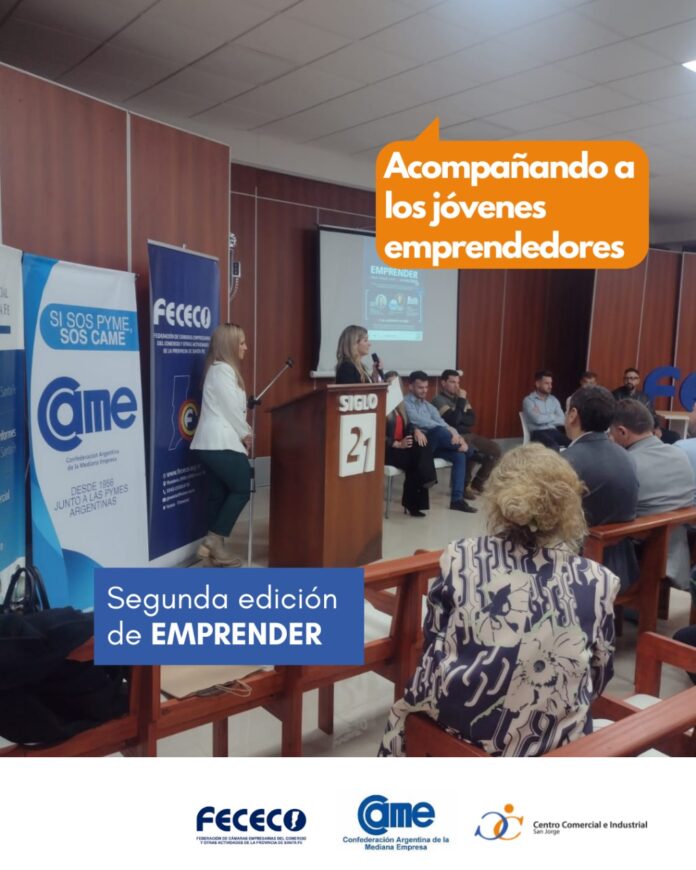 ➡️ Junto al presidente del Centro Comercial e Industrial de San Jorge, Damián Romero y Marcela Cuassolo, acompañamos a nuestro representante Agustín Rucci en una jornada que reunió a más de un centenar de jóvenes empresarios y estudiantes.