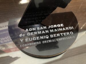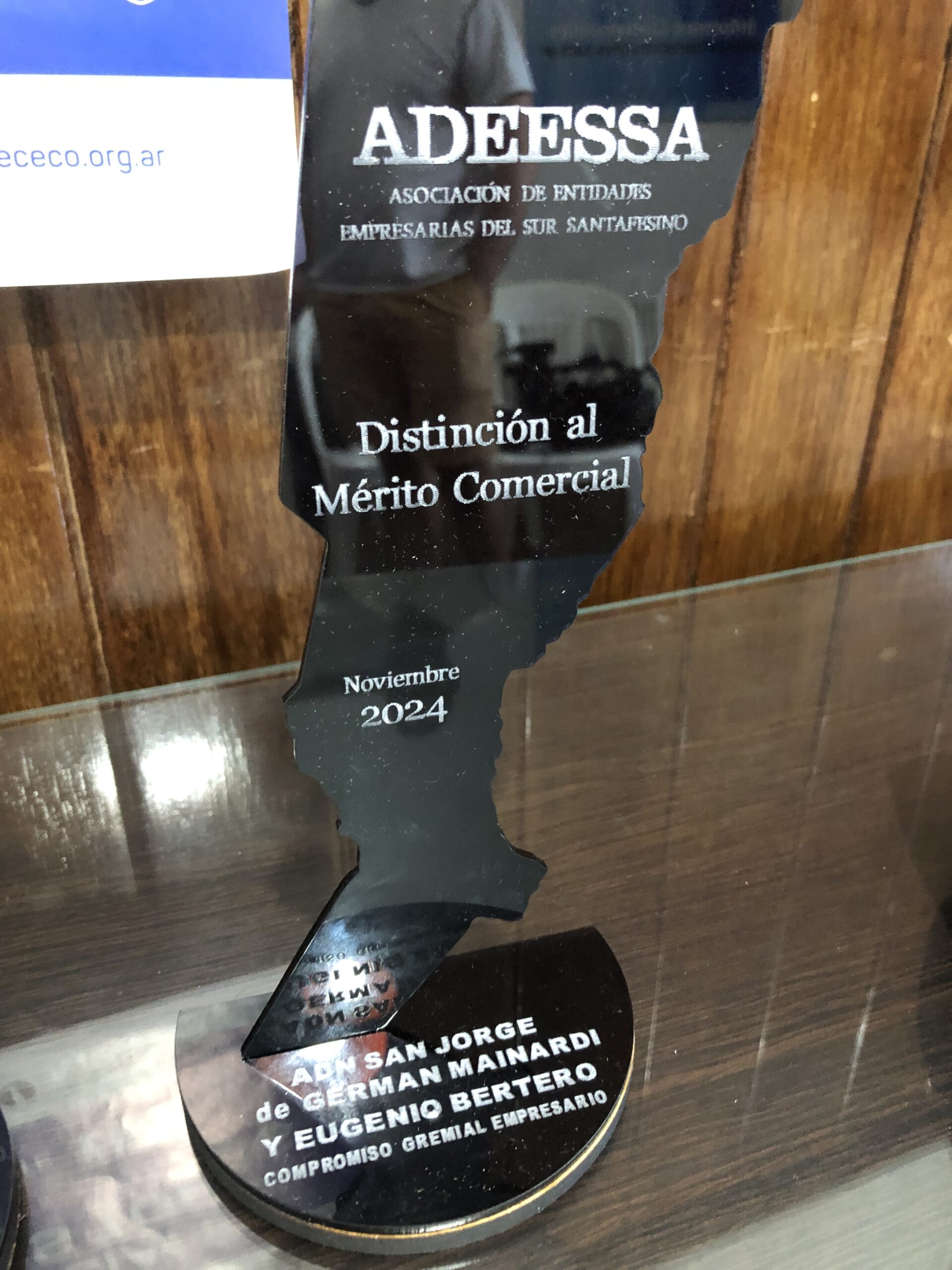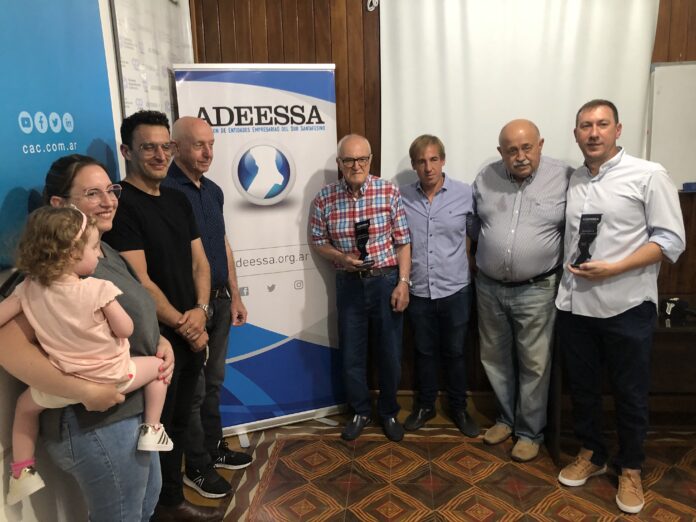 En el Centro Comercial e Industrial de nuestra ciudad, se hicieron entrega las distinciones que otorga ADEESSA a comercios, donde se premio la trayectoria empresarial a Bertero Maquinarias SA por sus 122 años de labor interrumpida y tambien fue distinguido por el compromiso gremial ADN SAN JORGE. Se vivió un momento muy emotivo. Nestor Cravero fue el presentador oficial y el pte de dicho centro Damian Romero explicó los motivos de las entregas.