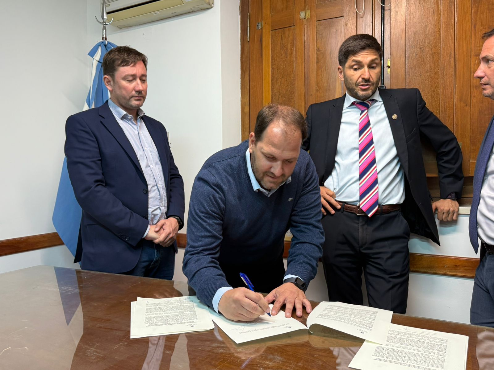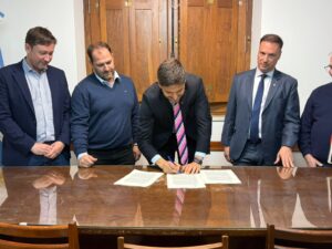 El intendente @juampipellegrino firmó un convenio este miércoles con el gobernador @maxipullaro y el ministro de Obras Públicas @lisandroenrico, para concretar el resto de la adecuación del canal urbano San Martín de nuestra ciudad.