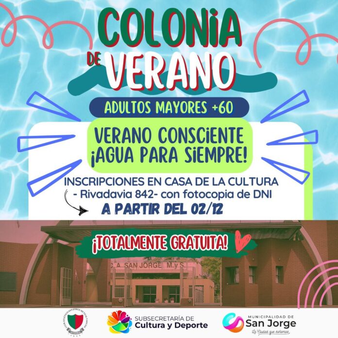 Desde hoy comenzaron las inscripciones para colonia de vacaciones tanto para niños (que se hará en La Emilia) y para adultos (a realizarse en Club San Jorge). Para cualquiera de ellas deben acercarse a la Casa de la Cultura de 08:30 a 12:30 con dni de la persona a inscrobir